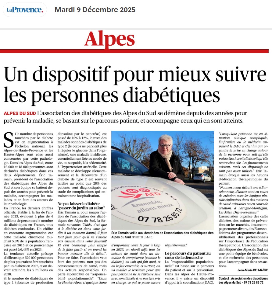 Le 14 novembre, nous tiendrons un stand dans le hall d'entrée de l'hôpital de Gap, de 10h00 à 16h00, aux côtés du service de diabétologie.